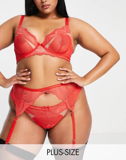 Plus Size Sexy Lingerie Set Women s Plus Floral Lace Bow Front Strappy Bra Sheer Heart Mesh Gartered Mini Skirt With Free Panty Lingerie Three Piec Very well made.