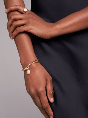 Michael Kors 14ct Gold Plated Silver MOP Lock Chain Bracelet H Very well made.