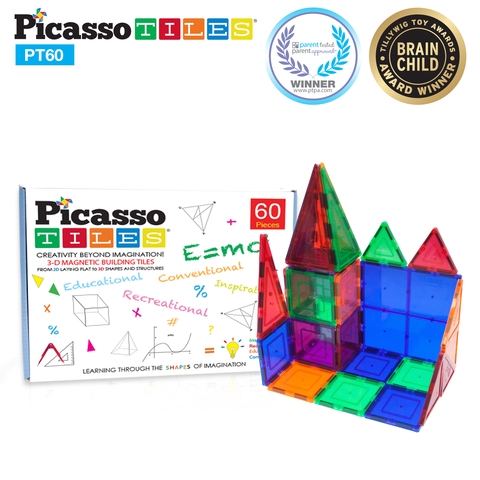 Magnet Building Tiles Set 60 Pieces Clear 3D Picasso Tiles PT60 Very well made.
