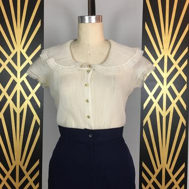 1950s blouse sheer white nylon vintage 50s blouse knife pleat Very well made.