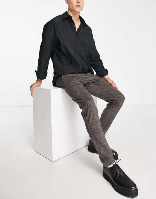 Only Sons slim fit smart jersey check trousers in warm grey Very well made.