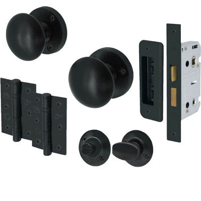 XFORT Smithy s Range Black Antique Ball Shaped Mortice Door Knob Set with 75mm Ball Bearing Hinges and 75mm Tubular Latch Traditional Door Knob Set Very well made.