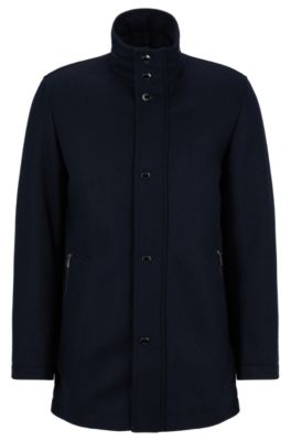 BOSS Wool blend coat in herringbone weave with stand collar Very well made.