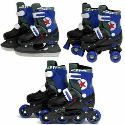 SK8 Zone Boys Blue 3in1 Adjustable Roller Blades Inline Quad Very well made.