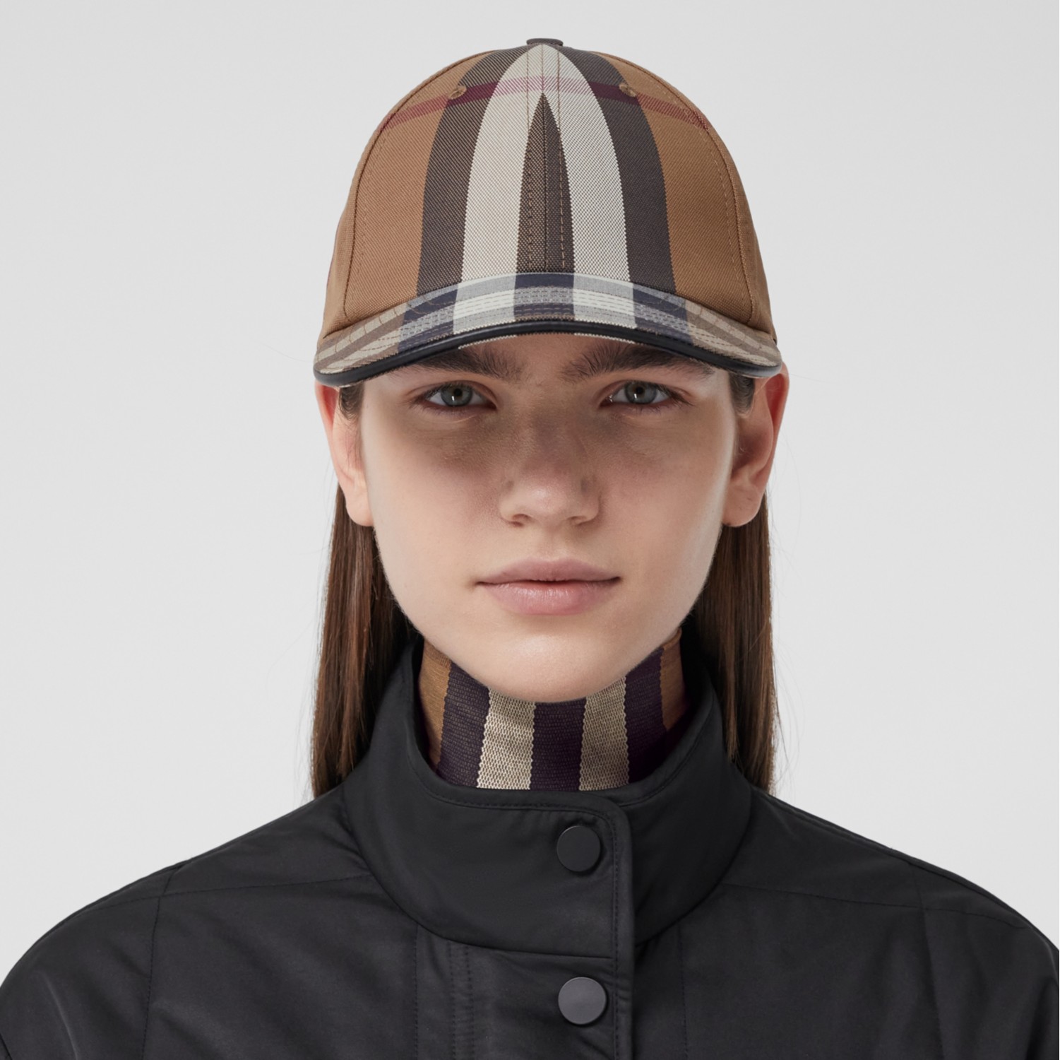 Logo Detail Exaggerated Check Cotton Baseball Cap in Birch brown Very well made.