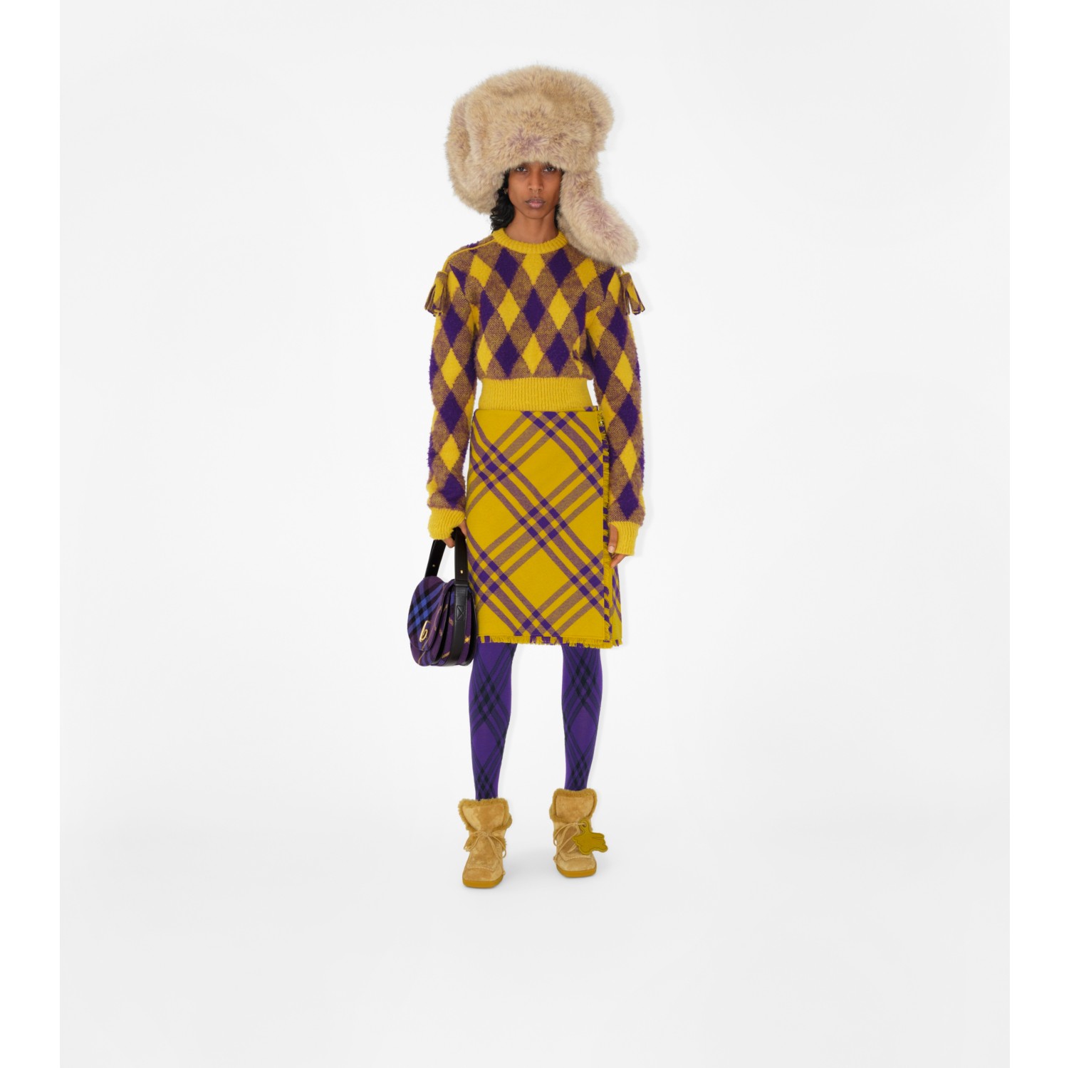 Faux Fur and Cotton Trapper Hat in Honey Burberry Official Very well made.