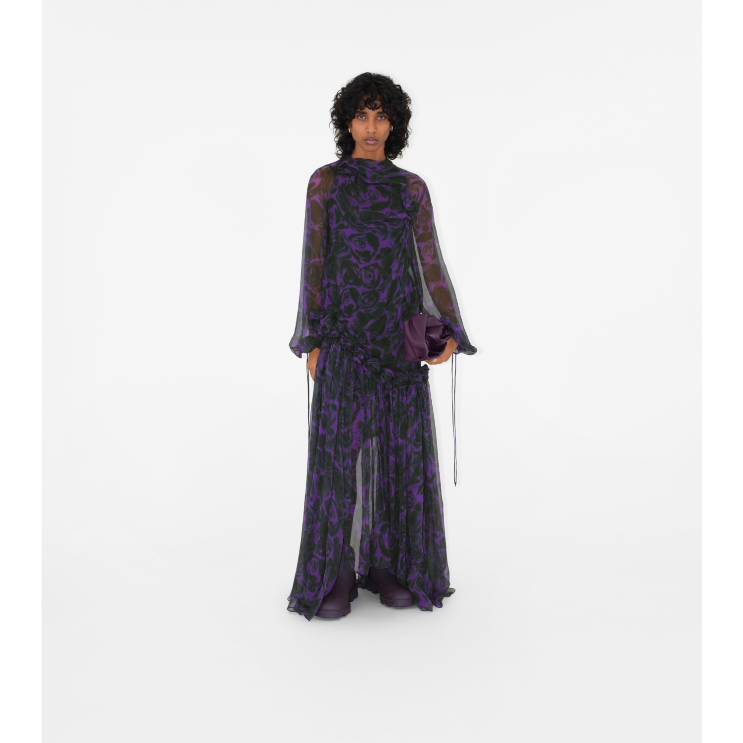 Rose Print Silk Dress in Vine Women Burberry Official Very well made.