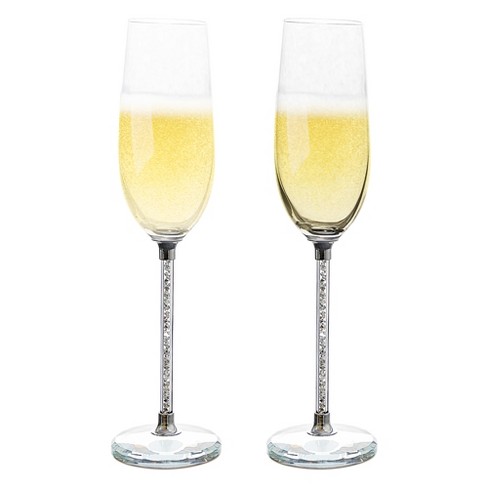 American Atelier Champagne Flutes Set Of 2 Gem Filled Stem Very well made.
