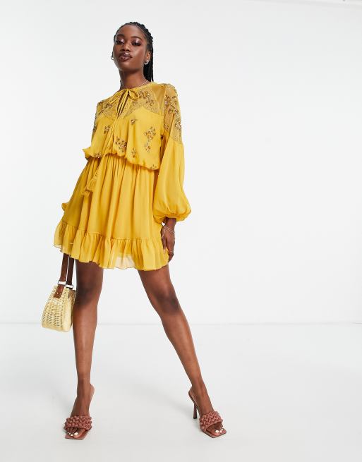 ASOS DESIGN soft chiffon mini dress with floral embellishment Very well made.
