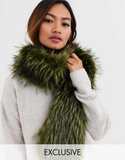 My Accessories London Exclusive faux fur scarf in khaki and brown Very well made.