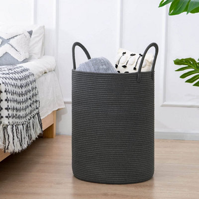 Large Laundry Basket Grey Tall Laundry Hamper Woven Rope Storage Very well made.