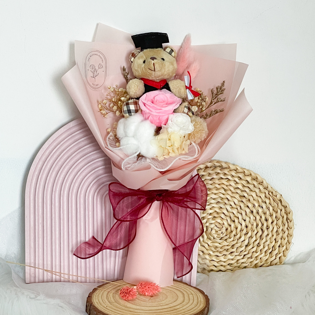 SG seller Graduation Bear bouquet with preserved flowers Shopee Very well made.