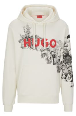 HUGO Cotton terry hoodie with logo and artwork Very well made.