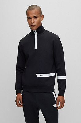 BOSS Cotton blend zip neck sweatshirt with logo stripe Very well made.