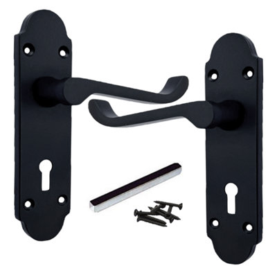 Epsom Door Handle Key Lock Scroll Lever Matt Black DIY at B Q Very well made.