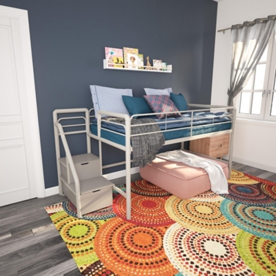 DHP Sol Junior Twin Metal Loft Bed with Storage Steps Silver Very well made.