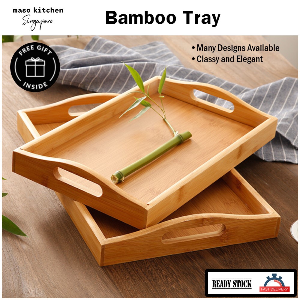 SG Seller Bamboo Tray Japanese Style Rectangle Wood Like Tray Very well made.